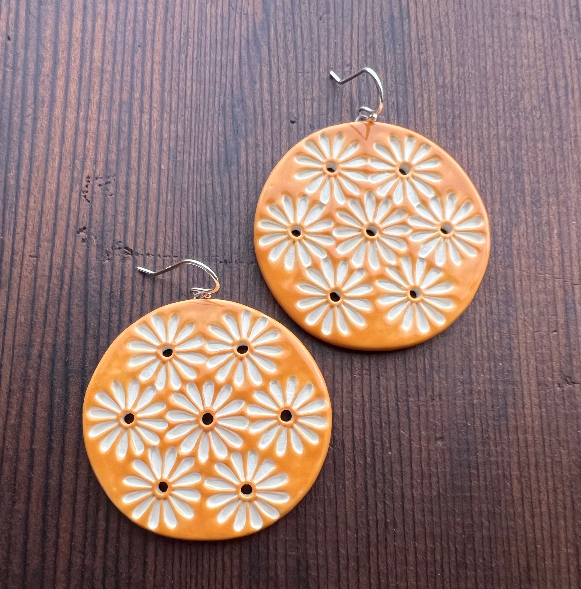 1.5" light weight Janis daisy chain diffuser earrings. Set on solid .925 sterling silver hooks.