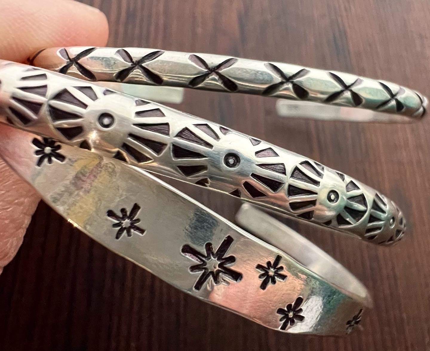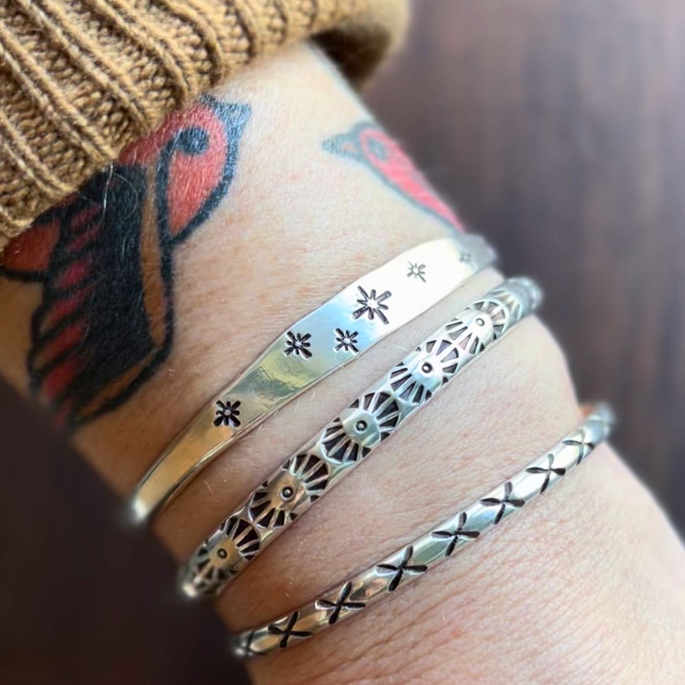 Day dreamers and shooting star wishers, this one's for you. Solid .925 sterling silver cuff with simple, elegant starry stamped detail. Available in 3 sizes.