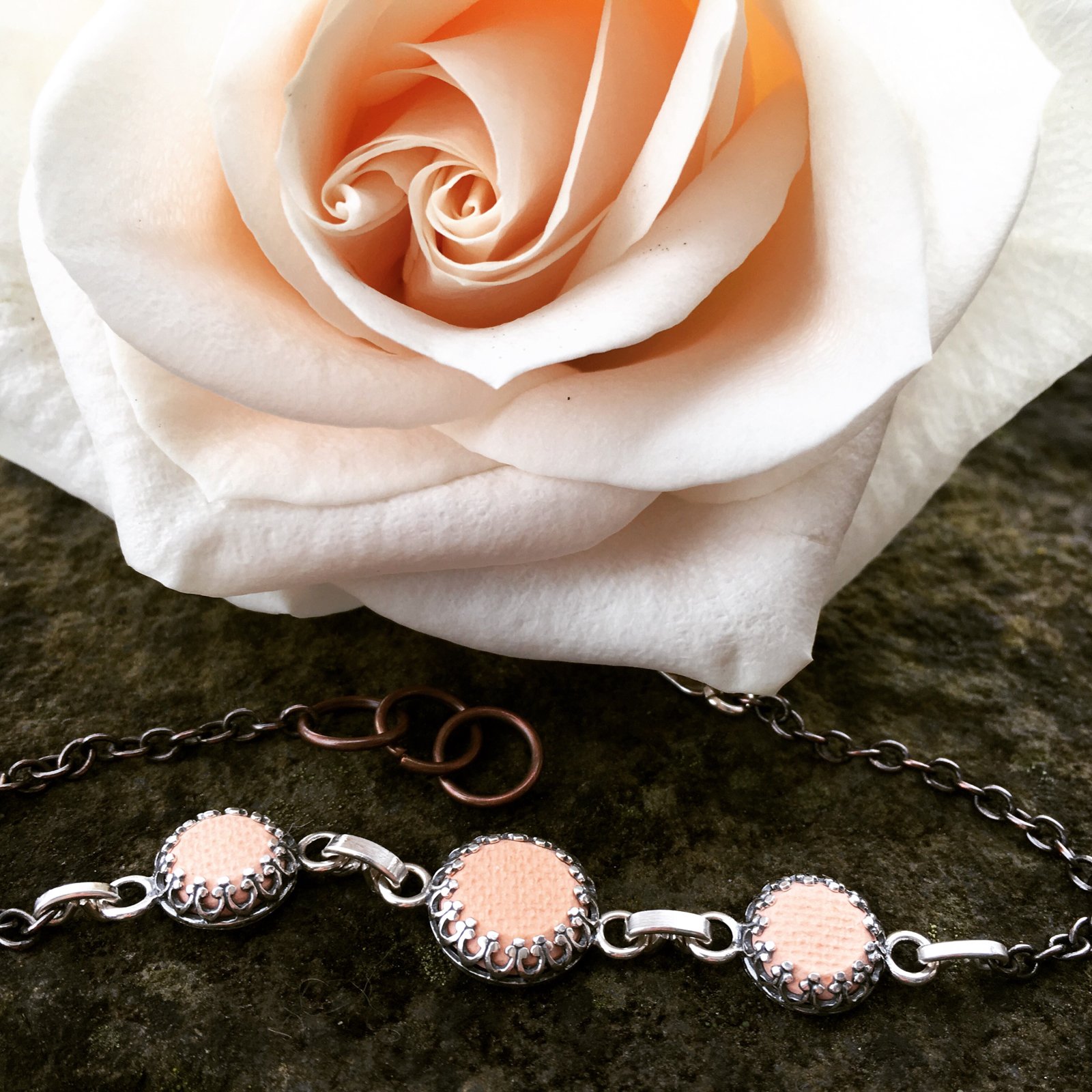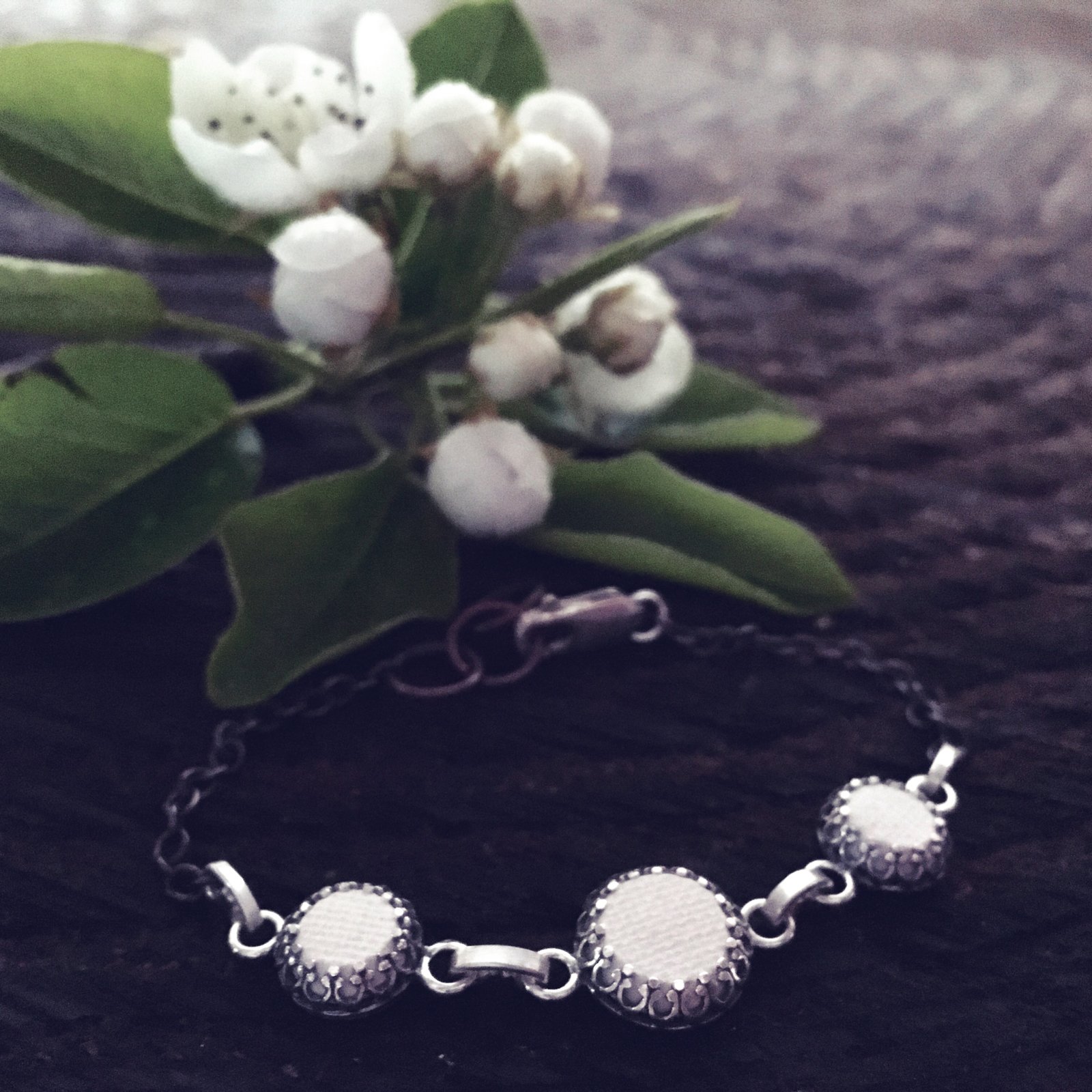 Our Trinity Bracelet is a dainty alternative to our Infinity Bracelet and just as comfy! Standard length is 7". Additional links are sold separately. Custom sizes are optional with an additional charge. Ceramic stones are set in solid Sterling Silver antique style bezels. Chain is a slender, solid silver, double link design.